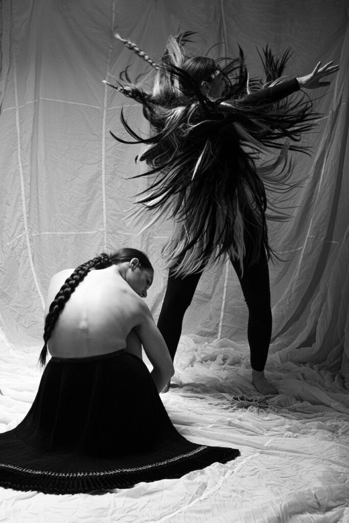 Marchela: The Eastern European beginning that we look at through the female gaze relates a lot to nature being the mother of everything and of everybody. A lot of the stories in the Slavic folklore have female beginnings. A lot of the heroes and the archetypes have female sides to them as well, in which those questions are already asked. And when we bring them to this contemporary context, as Stephanie was saying just now, with those movements that we find either in a piece of embroidery or one word that we found in the legend, and then we recreate a whole ritual around it, and we bring it into contemporary works that magnify that female beginning, we look at it and we try to see it from all possible perspectives. What feminine power was before and what it is today as well, and how we can keep growing with it and being empowered by it.
