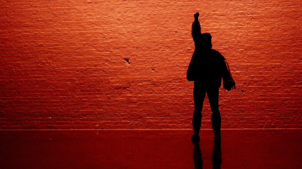 Civil unrest and protest in Peru, an experience of the collective, is evoked by a solo dancer through her gentle participatory offer to the audience; strings of butter beans draped over our chairs. People shake themnervously at first, but soon learn to respond when her call comes, a soft crackling in time with the beans on her body. A cloaked violinist appears to conjure Rodríguez’s voice, albeit trapped in silent screams, but memory quakes and murmurs of song emerge like slivers of light in the dark. The rhythm of stamping is off kilter with escalating strings and audience involvement is fleeting, somewhat disjointed, but this story of resistance and reclamation is yet unfinished.